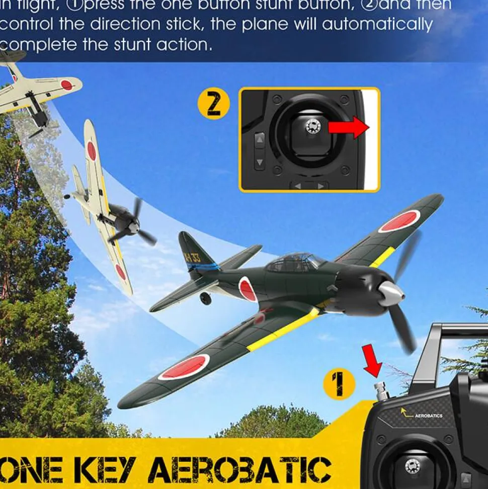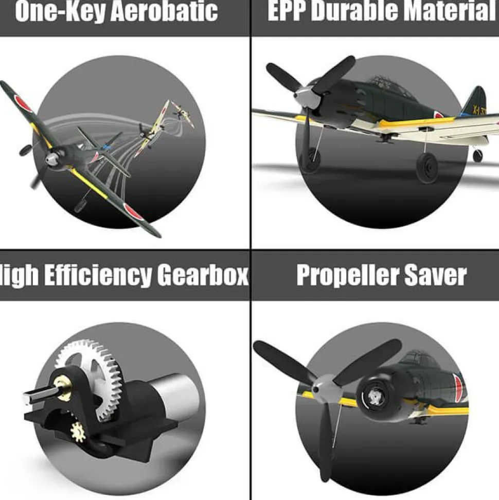 Avec une boîte de vitesses puissante et un moteur sans noyau, l’avion est stable, agile et peut même effectuer des acrobaties grâce à une fonction d’acrobatie à bouton unique. Il suffit d’appuyer sur un bouton et de tirer sur le manche pour contrôler facilement le Spitfire et effectuer des acrobaties.